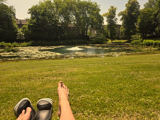I sat down outside with a clear view of the water, in the sun, with this amazing view. Reading Nietzsche in German, trying to focus. It’s difficult. Complex language. Old vocabulary. But I’m interested.